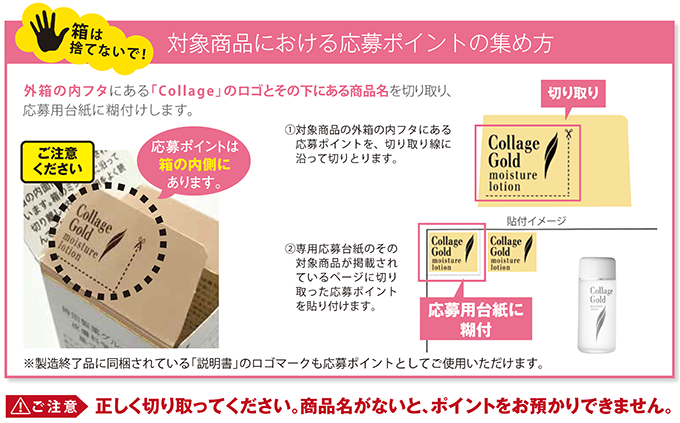「Collage」のロゴとその下にある商品名を切り取り、応募用台紙に糊付します。